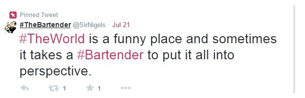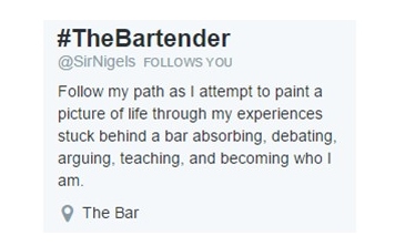 Just a reminder to check out @SirNigels and his twitter account for all bar related and alcohol fueled inquiries, and don’t forget to look out for his Upcoming Publication: “The World and the Ways of a Bartender”. Sure to be a great fun time read.